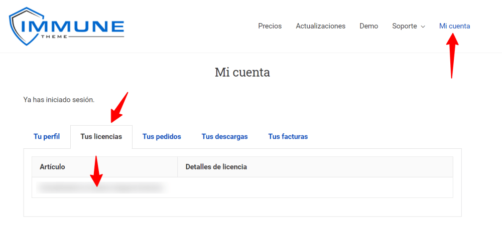Al adquirir Immune Theme® obtendrás una clave de licencia para activarlo. Esta clave la recibirás en tu email de bienvenida y también podrás consultarla en tu cuenta de usuario, accediendo a Mi cuenta > Tus licencias.