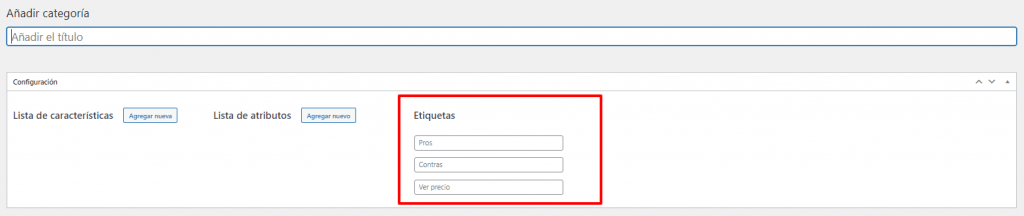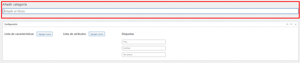 Pongamos que estamos creando una web de material para gamers y vamos a crear la categoría Sillas Gaming. Una vez introducido el título, pasamos a definir los diferentes apartados de la categoría.
