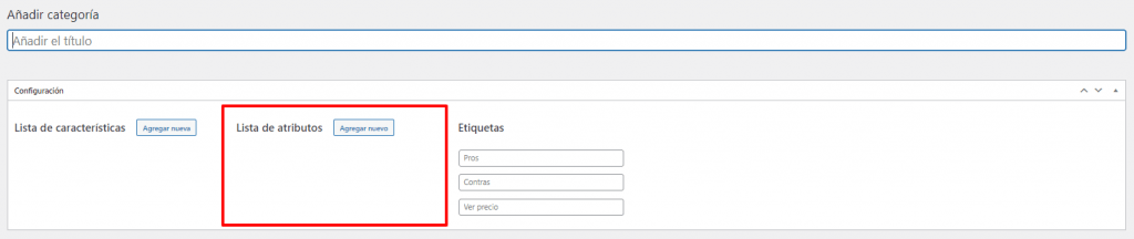 Clica en Agregar nuevo para añadir tantas casillas de atributos como necesites.