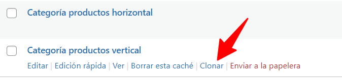 Para clonar una categoría ve a Immune > Todas las categorías y clica en la opción clonar de la categoría que quieras duplicar.