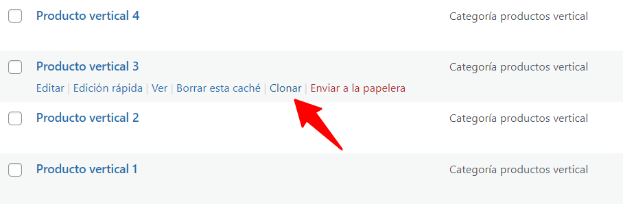 En caso de que quieras clonar todo el producto puedes hacerlo directamente desde el listado de productos Immune. Ve a Immune > Todos los productos y clica en la opción clonar del producto que quieras duplicar.