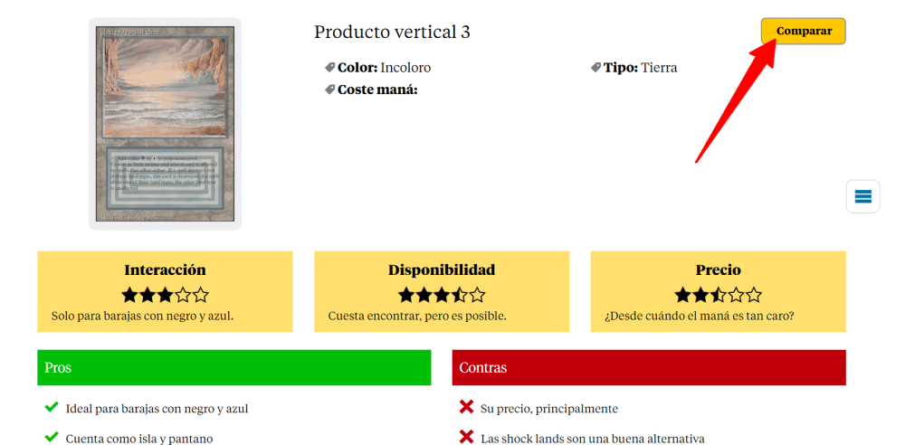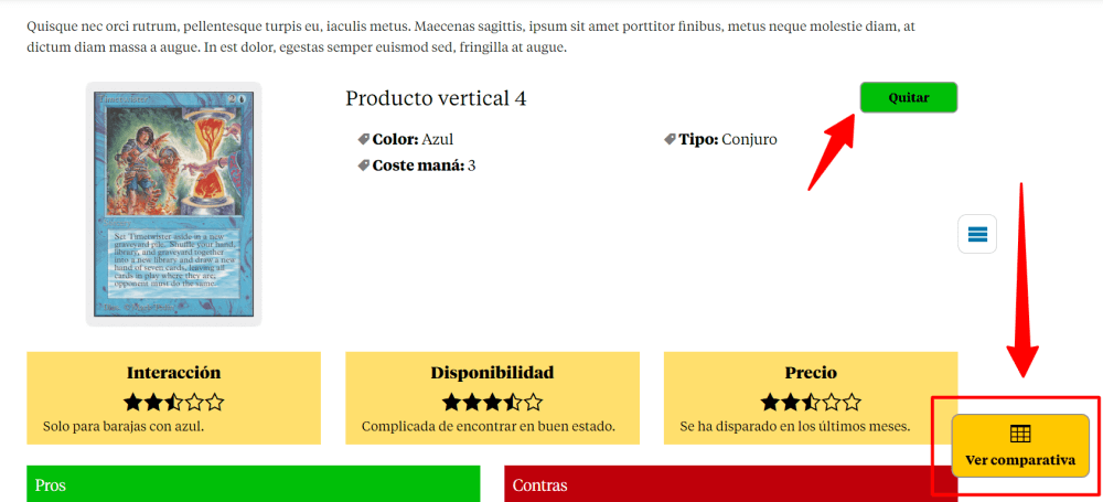 Una vez una categoría Immune cuente con más de un producto tendrás la opción de crear las comparativas Immune, pero además contarás con una funcionalidad muy interesante para los usuarios llamada comparar. Esta función permite a los usuarios de la web crear tablas comparativas personalizadas solo con aquellos productos de los que les interese ver la información. Estas comparativas personalizadas heredan el estilo de la comparativa Immune de la misma categoría.