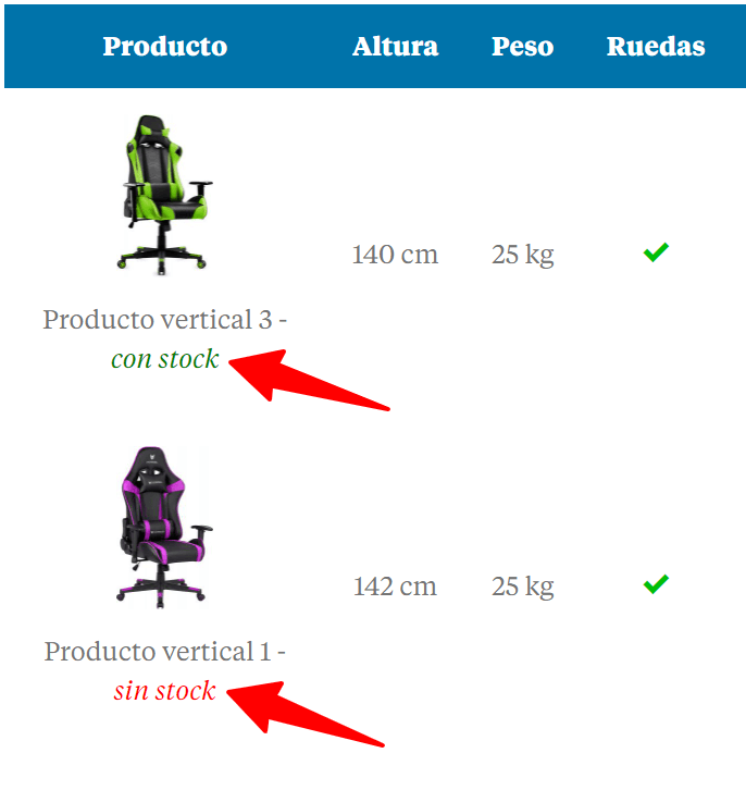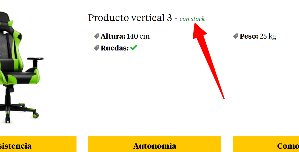 - Mostrar estado del stock: activa esta opción (SI, color verde) si quieres que se muestre, junto al nombre del producto Immune, el estado de stock. Este aviso se mostrará tanto en la ficha de producto (producto Immune) como en la tabla comparativa (comparativa Immune).